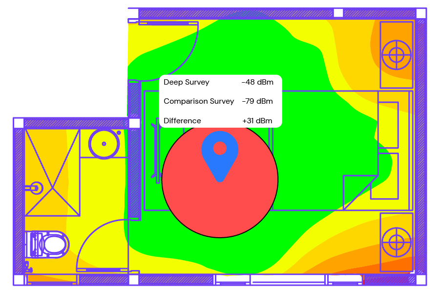 | Data Collected | Full heatmaps of RF coverage, interference analysis, and AP placement insights. | Full heatmaps of RF coverage. Pin-based, easily repeatable measurements that provide deep real-world detail at each location. |